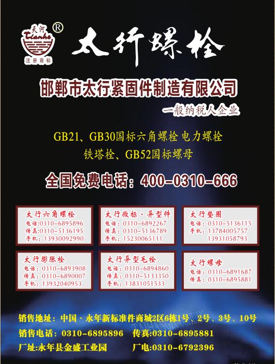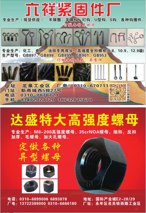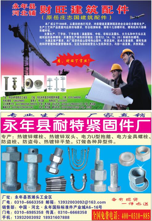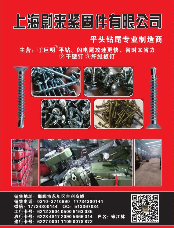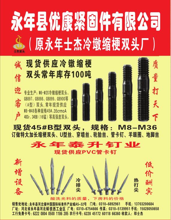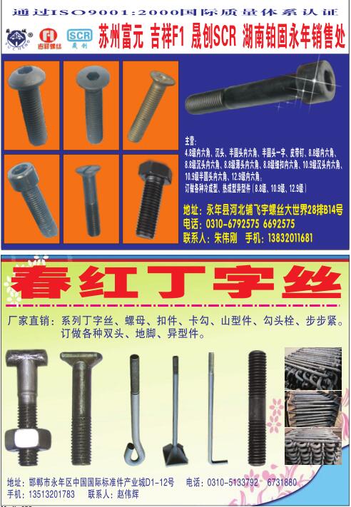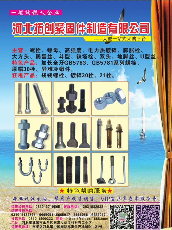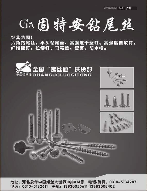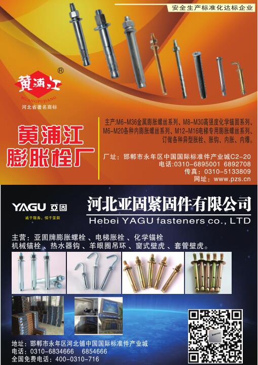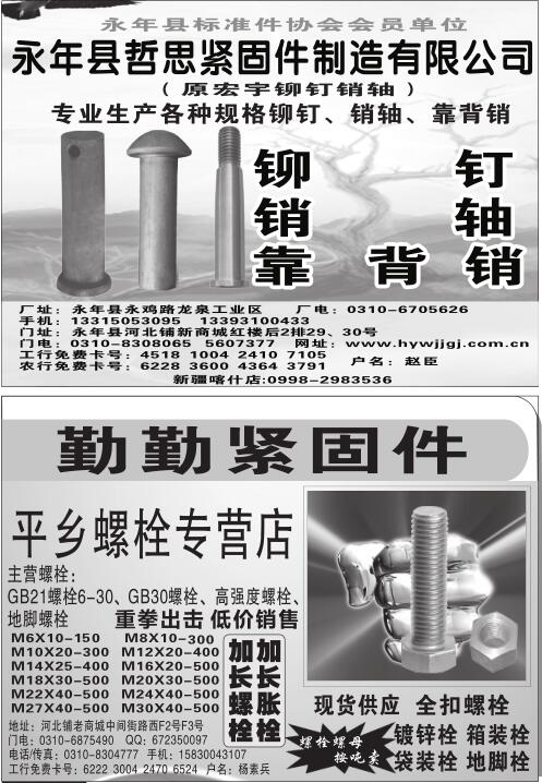 首頁|關(guān)于我們 |公司新聞 |行業(yè)資訊 |緊固件展會(huì) |緊固件商訊 |聯(lián)系我們 |金江快訊報(bào)紙廣告
