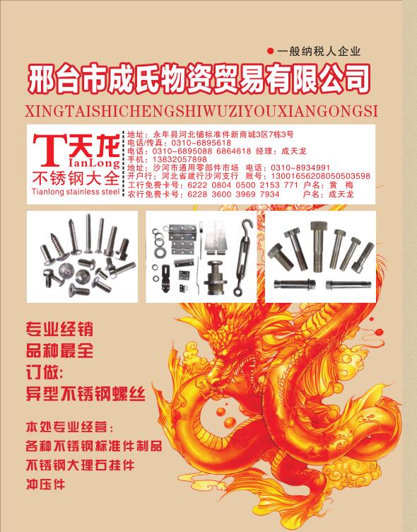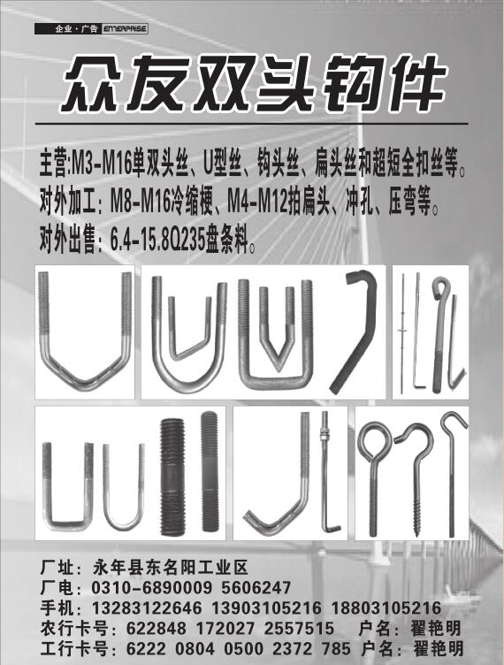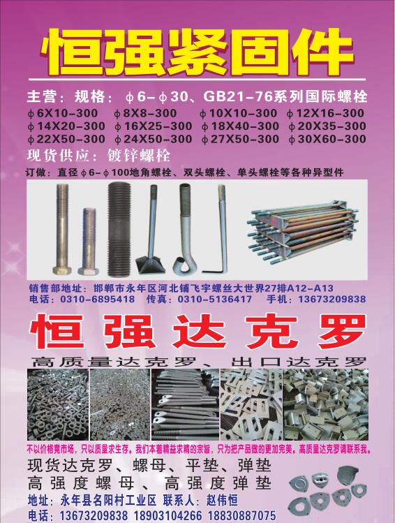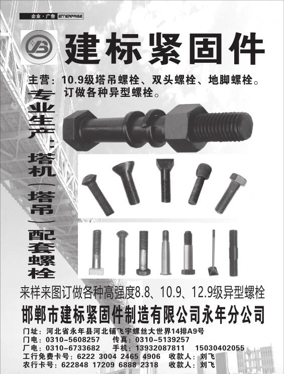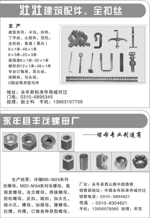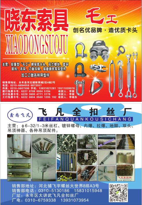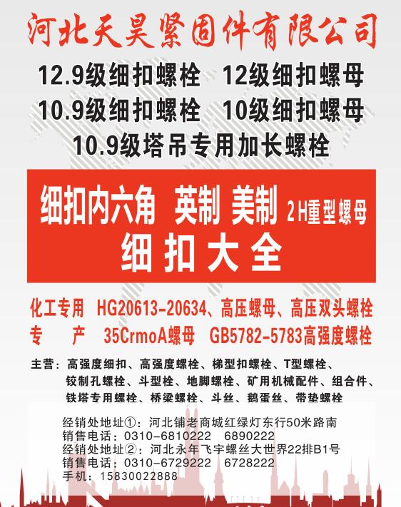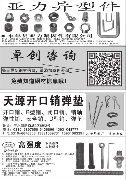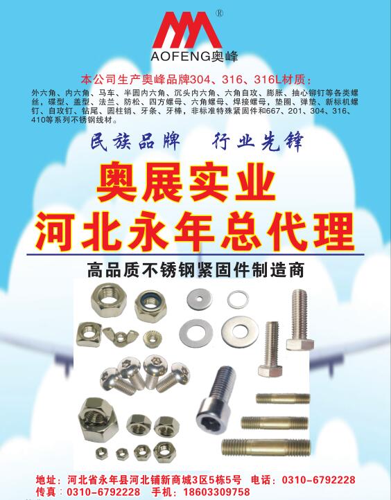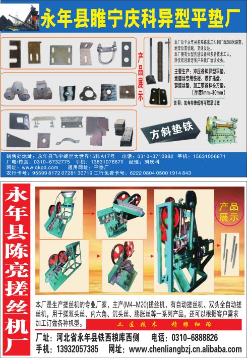 首頁|關(guān)于我們 |公司新聞 |行業(yè)資訊 |緊固件展會(huì) |緊固件商訊 |聯(lián)系我們 |金江快訊報(bào)紙廣告