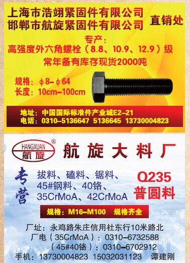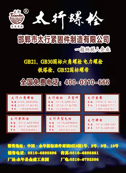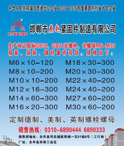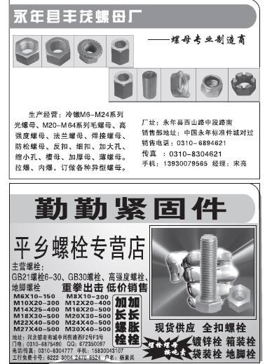 首頁|關(guān)于我們 |公司新聞 |行業(yè)資訊 |緊固件展會(huì) |緊固件商訊 |聯(lián)系我們 |金江快訊報(bào)紙廣告