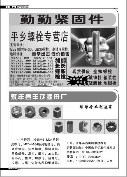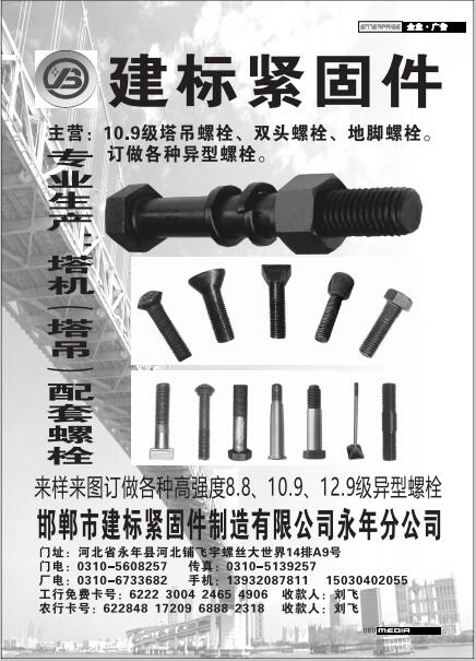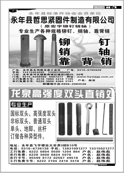首頁|關(guān)于我們 |公司新聞 |行業(yè)資訊 |緊固件展會 |緊固件商訊 |聯(lián)系我們 |金江快訊報(bào)紙廣告