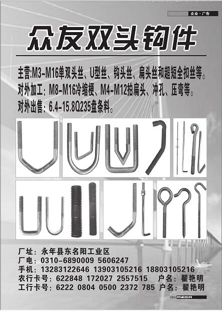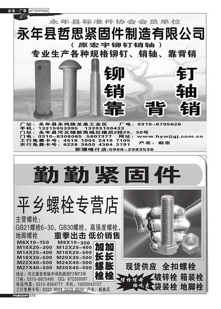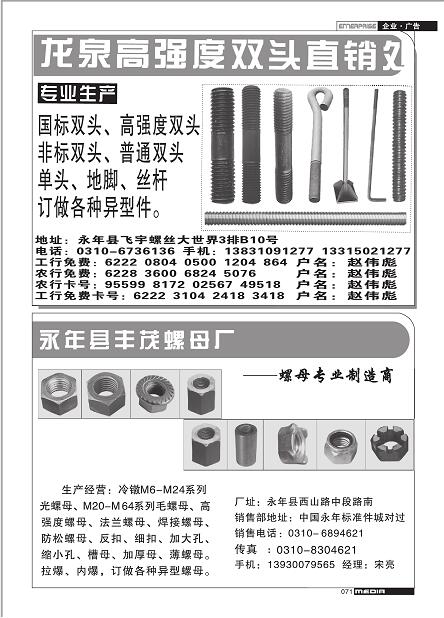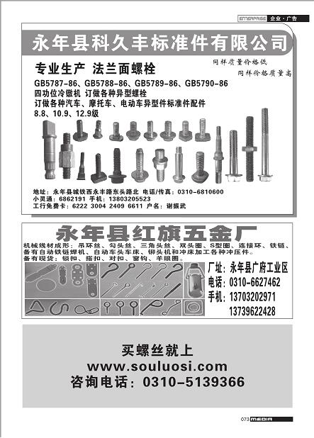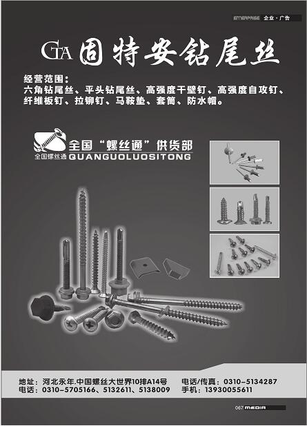 首頁|關(guān)于我們 |公司新聞 |行業(yè)資訊 |緊固件展會(huì) |緊固件商訊 |聯(lián)系我們 |金江快訊報(bào)紙廣告
