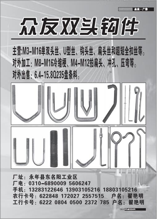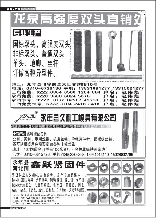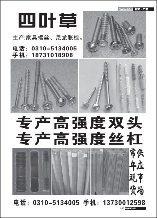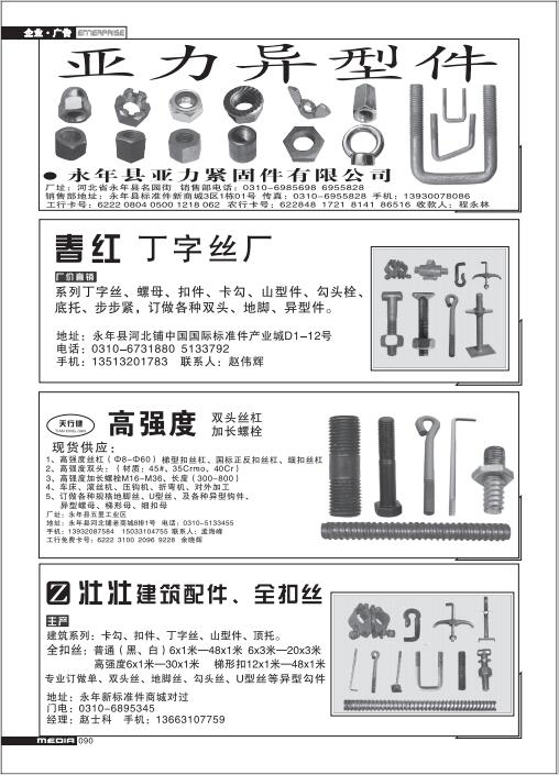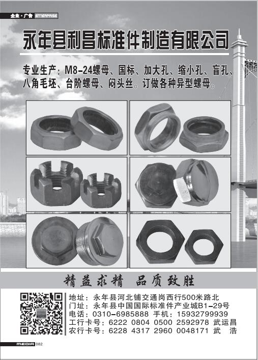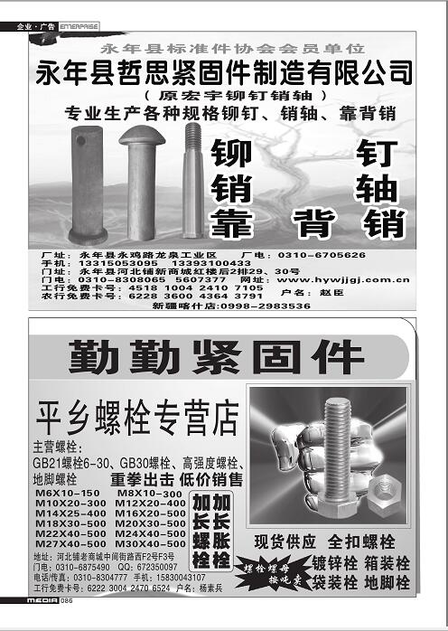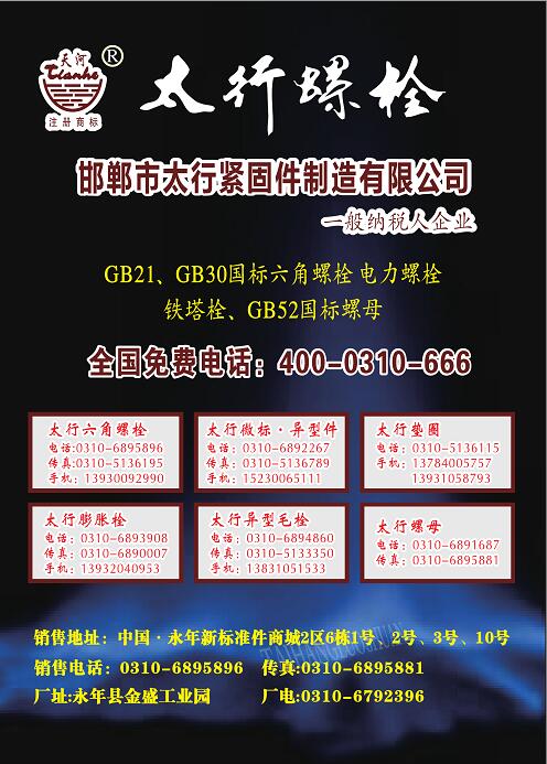 首頁|關(guān)于我們 |公司新聞 |行業(yè)資訊 |緊固件展會(huì) |緊固件商訊 |聯(lián)系我們 |金江快訊報(bào)紙廣告